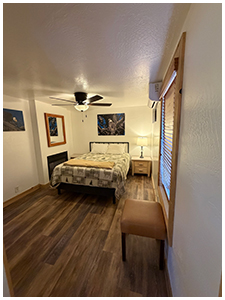 E5 – Pet Friendly - $30 per pet (one time fee) - 2 bedroom with queen bed in each bedroom, sofa, fireplace, 4 cup coffee pot and television (size 713 sq. ft.)
